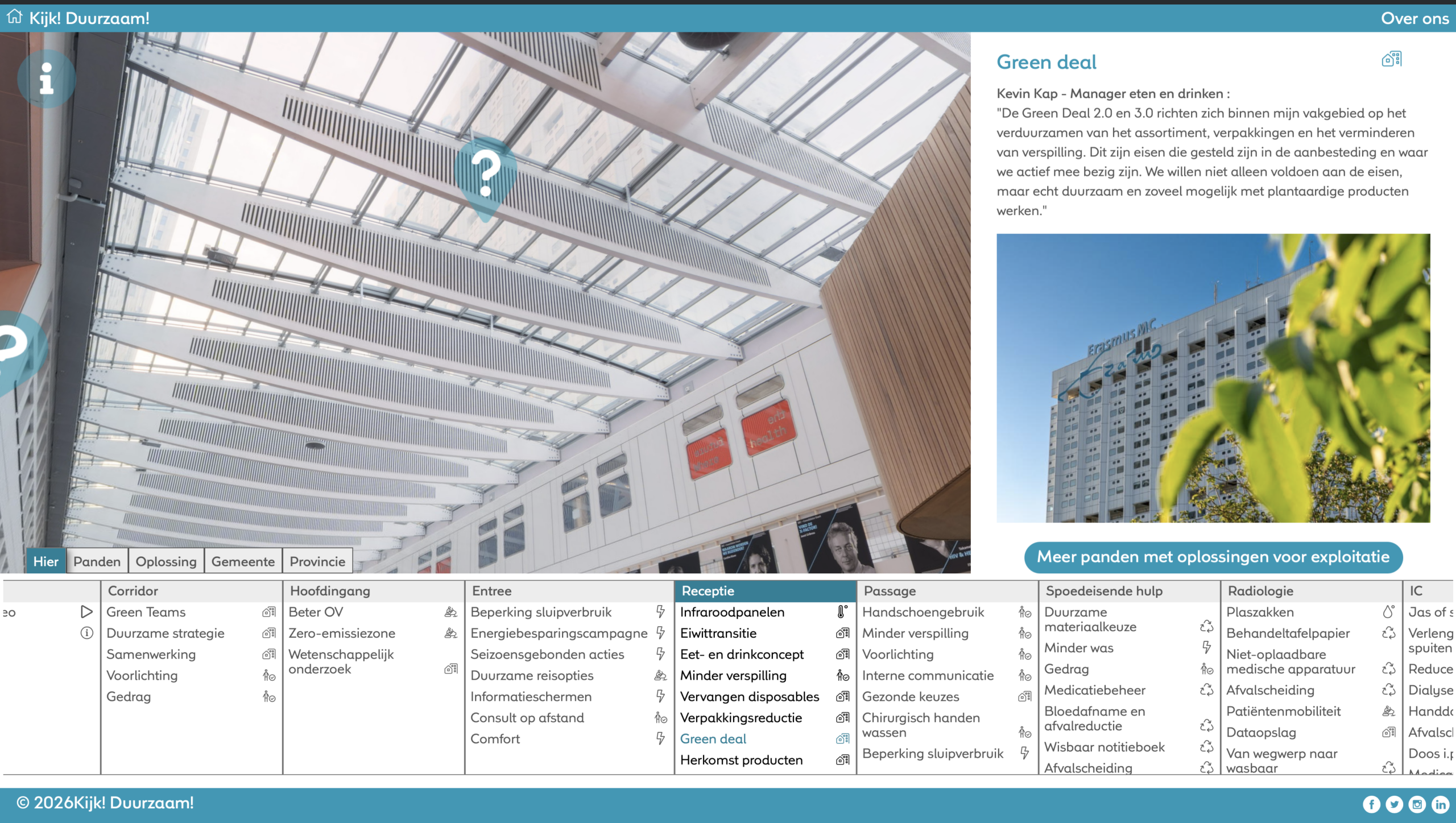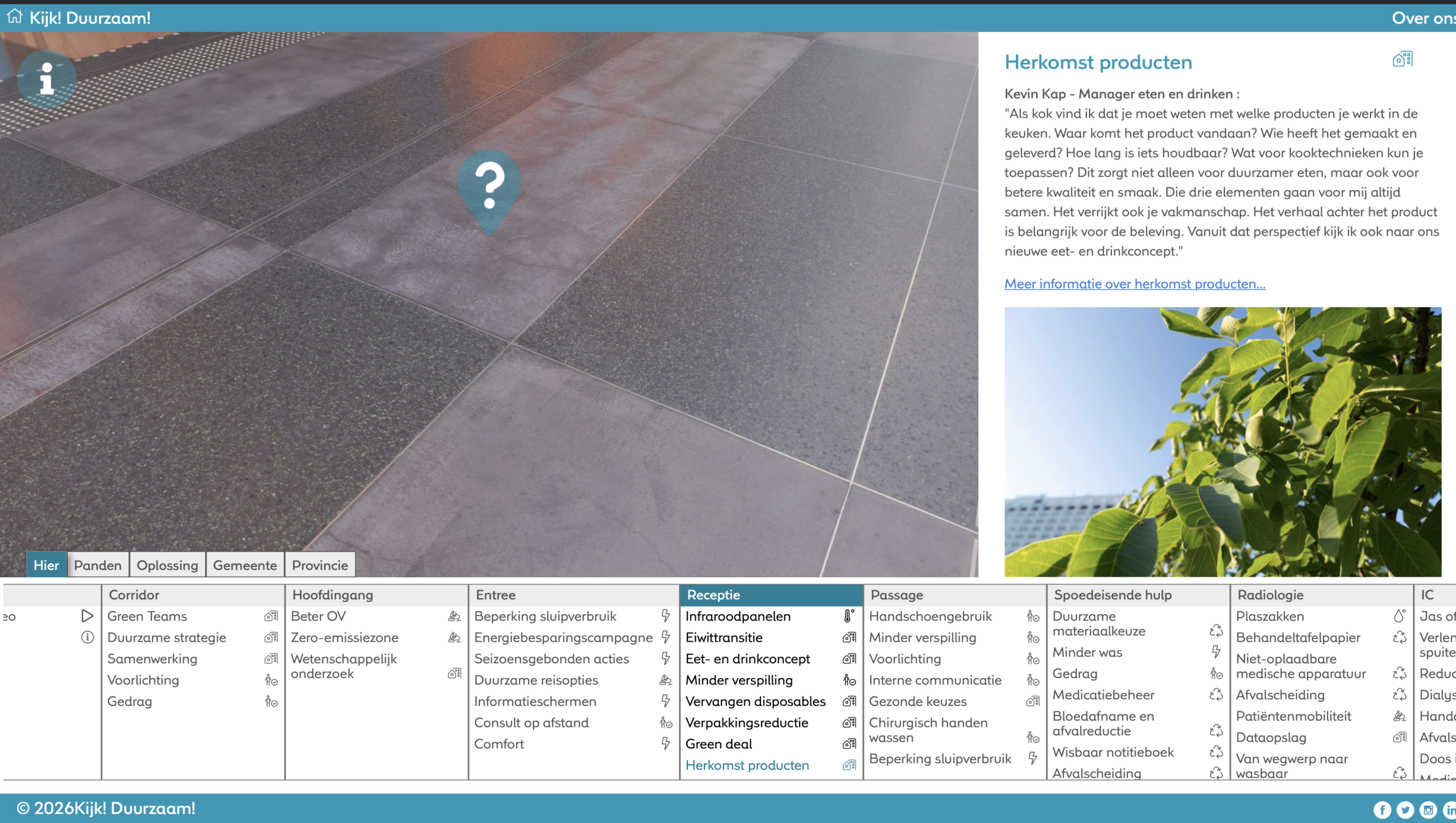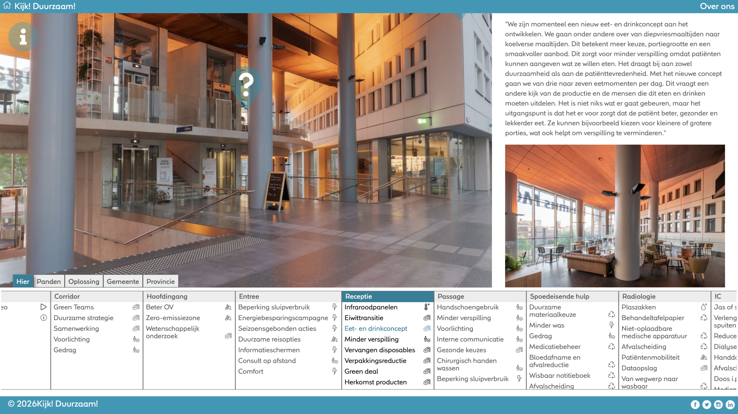 “Er zijn drie pijlers die wij belangrijk vinden. Dit zijn: beleving, gezondheid en duurzaamheid. Bij beleving gaat het natuurlijk om smaak, hoe het ervaren wordt. Wat vindt de patiënt er mooi aan en kan hij hier kiezen wat hij wil? Bij gezondheid gaat het om het voldoen aan de voedingswaardes, aspecten van diëtiek, schijf van vijf, allergenen en voedselveiligheid. Bij duurzaamheid kijken we bijvoorbeeld naar het soort product, de herkomst, de verpakking en welke apparatuur er nodig is om het te bereiden. Soms zijn die pijlers in balans met elkaar, maar ze zitten elkaar ook regelmatig dwars.